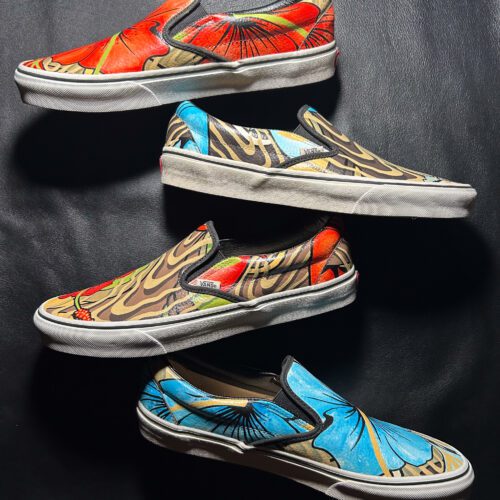 For the last 18 years, I’ve been on a journey to figure out exactly who I want to be and how best to express that. Professionally, I’ve done some of my best work as a Research & Development Chef. In my personal life, my first love is footwear. Along the way, I’ve painted. I’ve reconstructed. I find my greatest joy in combining both to create new work. I think of myself as a story teller. I’ve managed to make a living helping others tell their stories through food. However, I think mine is better told through leather, paint materials and time. I’m inspired most by nature, technology, and pop culture. The relationship between them is exciting for me to explore, I’m hungry to make new designs and silhouettes that resonate with people on an emotional level and I’m not afraid to fail until I make them. I want to make you look fly AND make you feel something. Let’s be seen together.