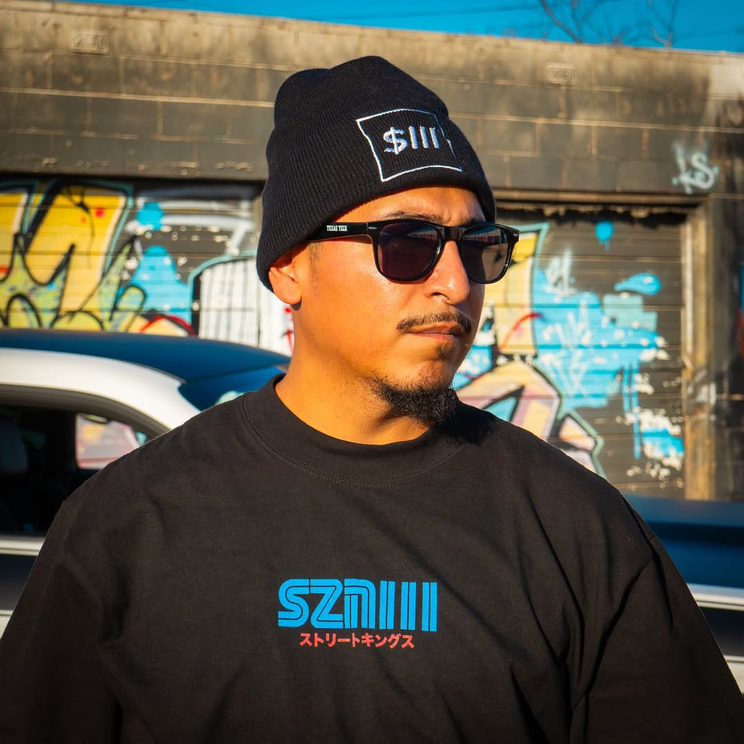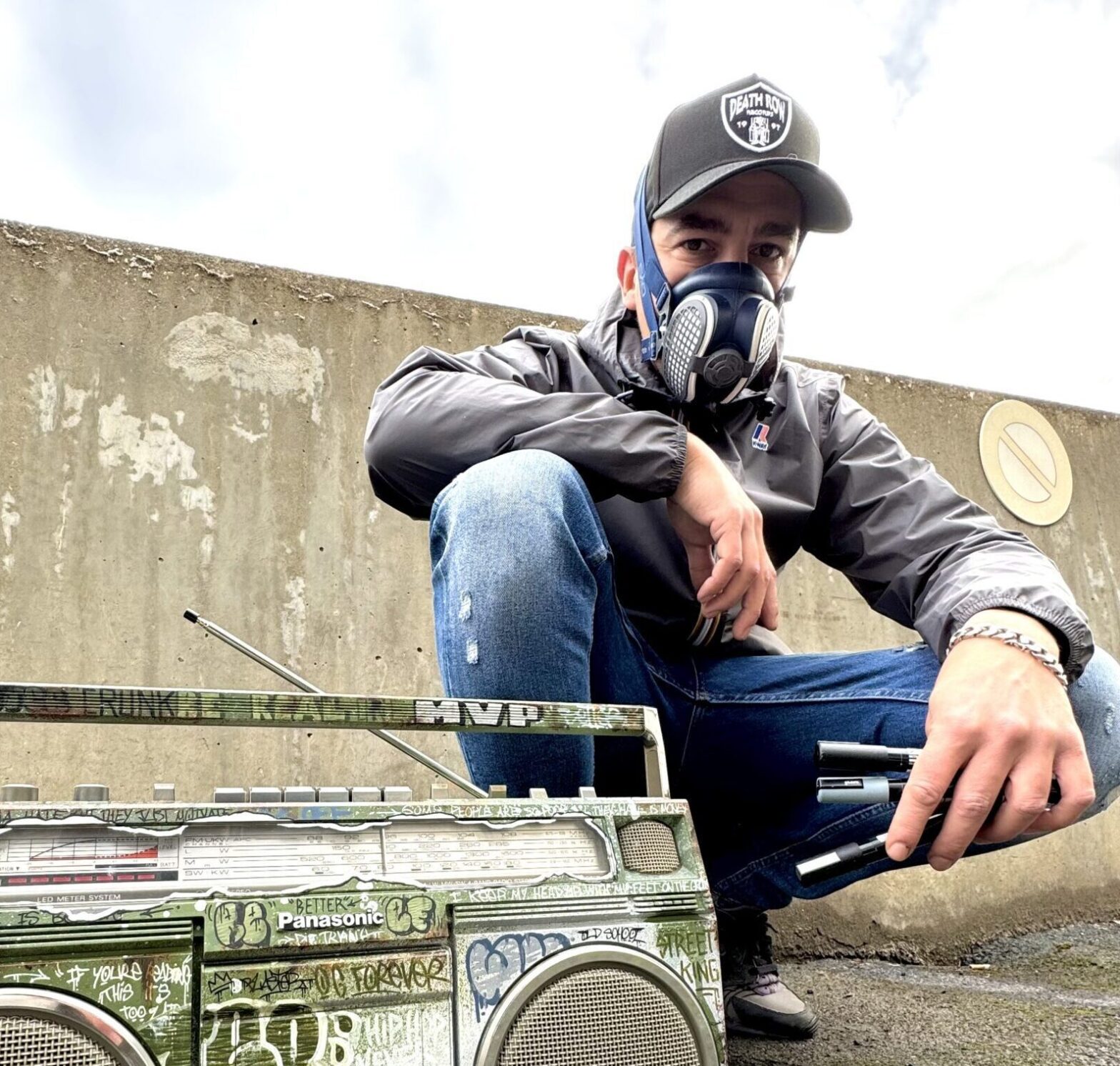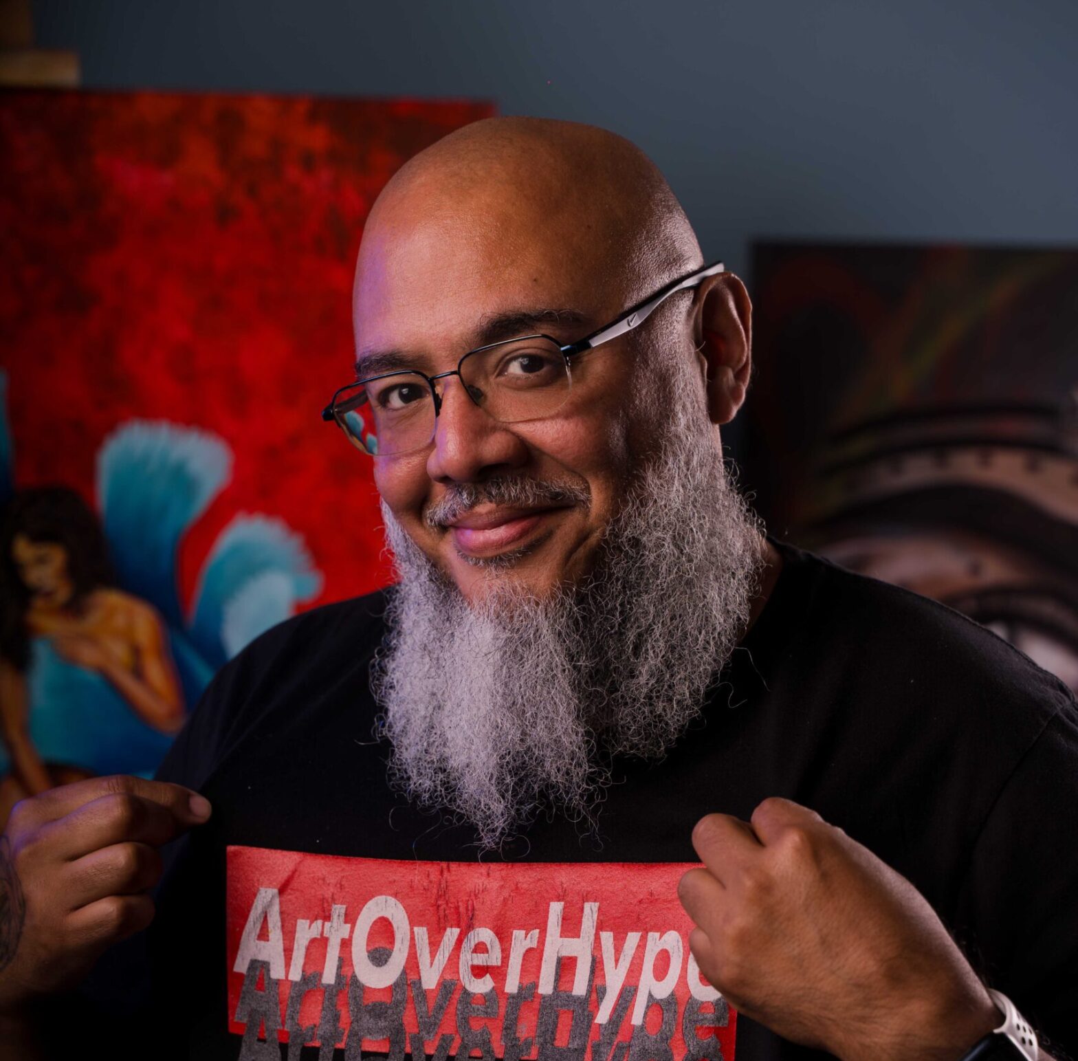 David “DEZ” Zambrano was born in 1976 in Los Angeles, California, and raised in Northern Virginia near Washington, DC. His passion for art began after watching Beat Street and seeing graffiti along the Red Line while visiting his father. A self-taught artist, DEZ draws from life experiences, with graffiti deeply influencing his style. Known for his versatility, he works across mixed media—canvas, walls, cars, motorcycles, and fabric. His custom footwear gained wide recognition, but his true love remains the canvas. DEZ believes every piece reflects his passion, pain, and life, created not for trends but from the soul.