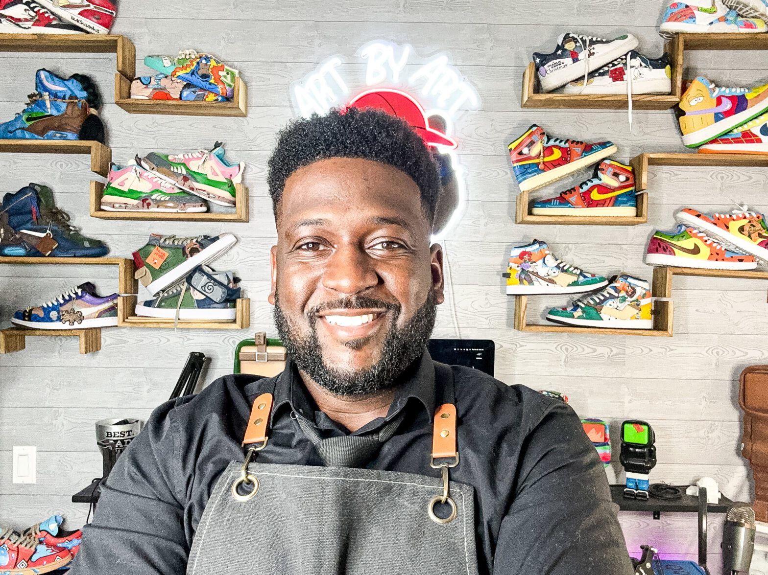 My name is Arthur, but most know me as Art. Born in Cleveland, Mississippi, I’ve always been drawn to creativity—painting, doodling, performing, anything artistic. I began painting shoes in 2003 with whatever I could find—nail polish, Sharpies, highlighters, even glitter pens—and wore each piece proudly. After stepping back to focus on family, I reignited my passion in 2019 by founding Art By Art, a brand built on creativity and authenticity. I now create custom sneakers, wooden art, and canvas pieces that fill homes and galleries. In 2022, I added 3D modeling to my craft. Today, I’m a sneaker artist, toy designer, and author—creating art that sparks emotion and tells stories.