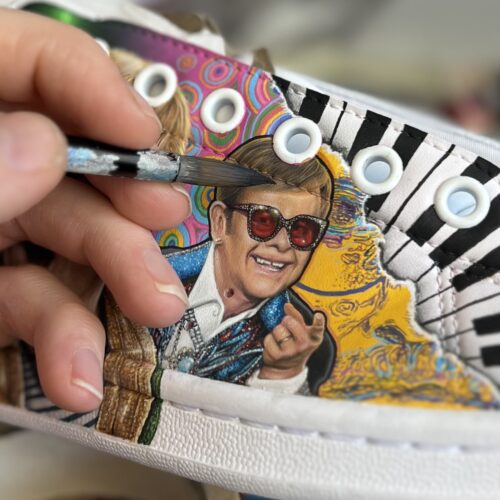 Howdy! I’m Karl from Starline Customs. I specialise in painting portraits that blend abstract art with realism. I’ve loved drawing since I could hold a pen – starting from doodles in detention to painting shoes for Elton John, Ed Sheeran, and Manchester United players. As a teen inspired by Banksy, my creativity sometimes got me into trouble. In college, a teacher named Gary gave me advice that stuck: “Life’s like driving a car – you need to look ahead or you’ll crash.” After failing college and working as a roofer, I realised how much I missed art. I began sharing drawings online, which led to commissions and the birth of my small art business. When I posted a pair of doodled shoes, my first custom commission followed, sparking the journey that became Starline Customs – because it truly felt like the stars had aligned.