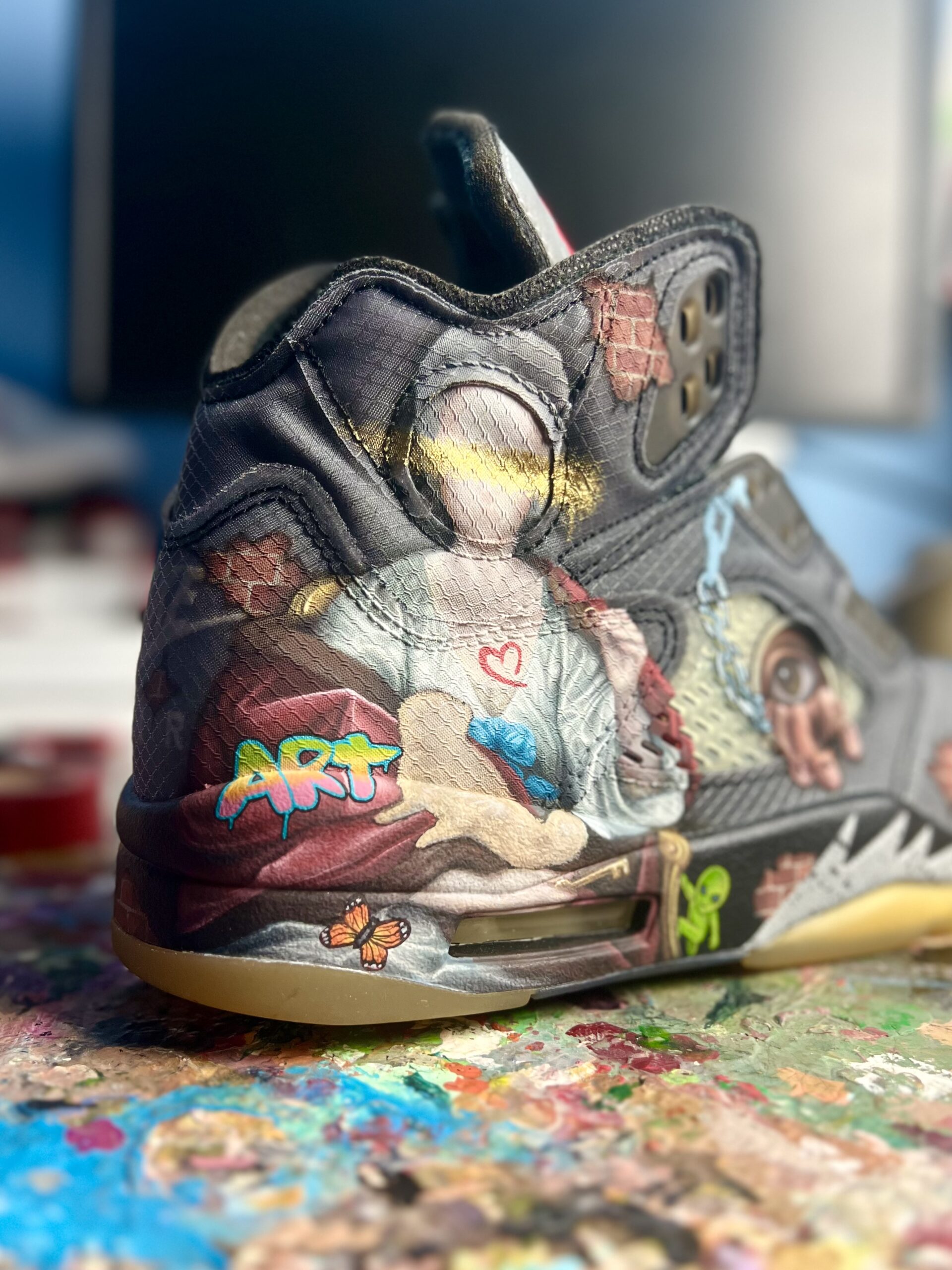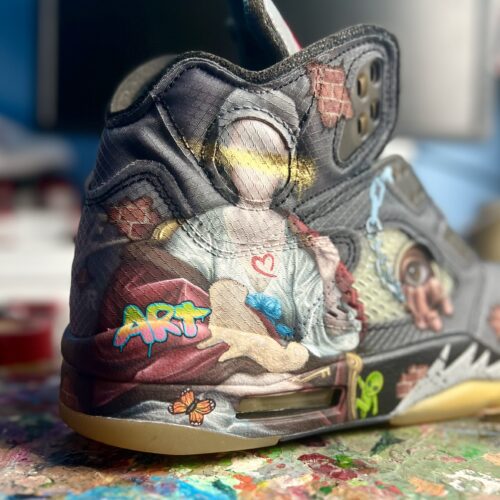 I’ve been customizing shoes for about 8 years now. It started back in high school when I’d paint old pairs for friends and family just for fun. Over time, it grew into something I really enjoyed and eventually turned into a small business. At one point, I drifted from my original style and started creating what I thought people wanted to see. Now I’m getting back to my roots, making designs that actually mean something to me and reflect the kind of art I’m passionate about. Most of my ideas come from everyday life, things I see, listen to, or experience. I like adding my own twist to each pair and creating something original that people can connect with.