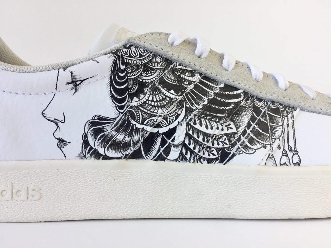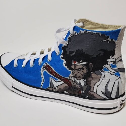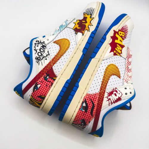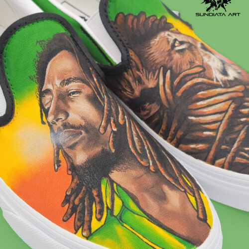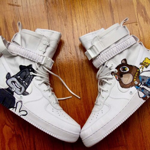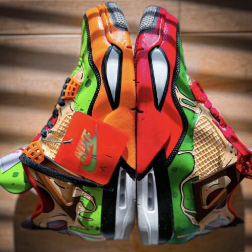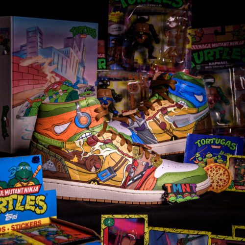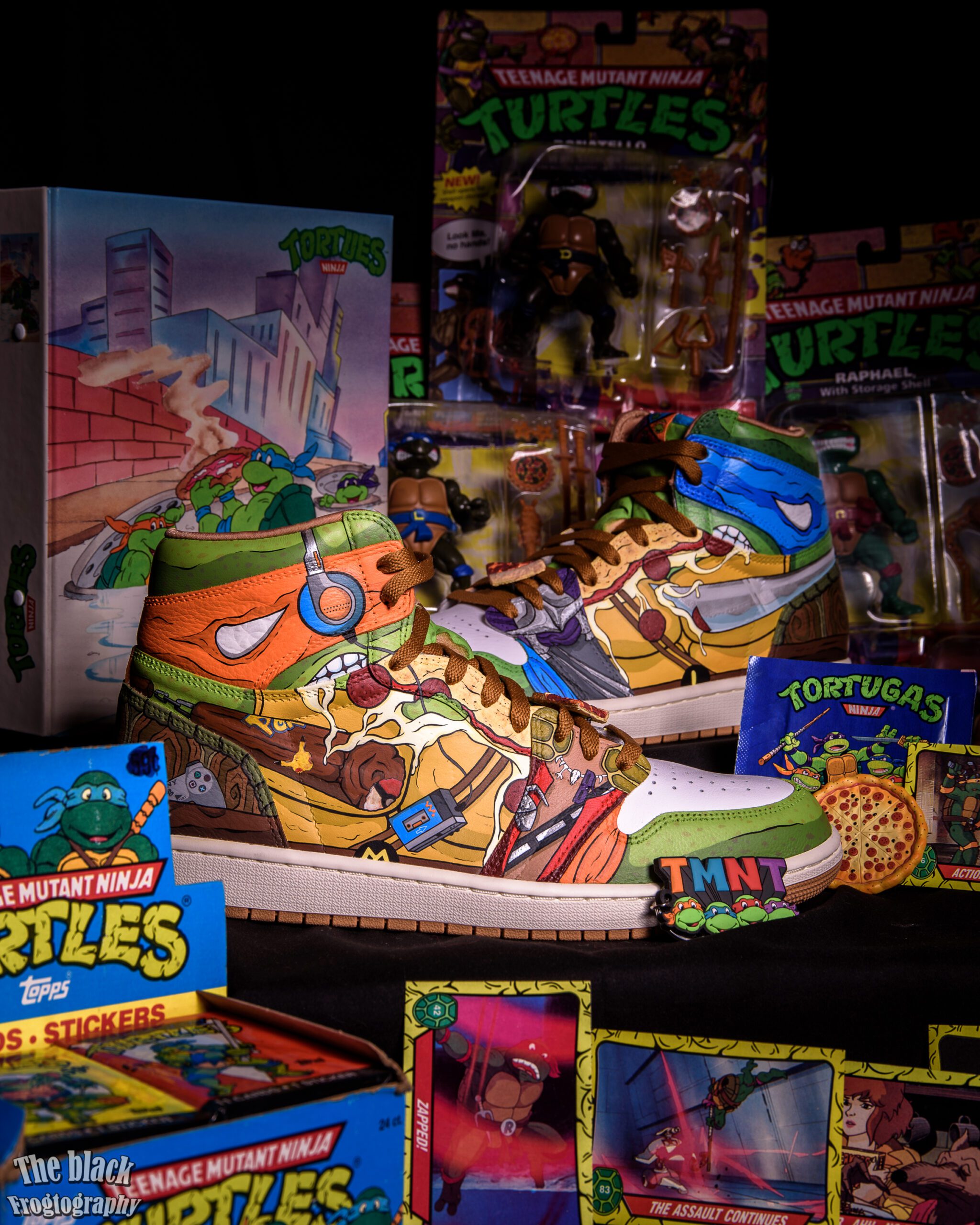 Whether it’s drawing a portrait with pen/pencil to designing/customizing a truly one of a kind sneaker, I absolutely love it. From the moment I’ve picked up a brush and a shoe I haven’t looked back. I really enjoy bringing a design to life. I get most of my inspiration from album covers, cartoons, comics and cinema.