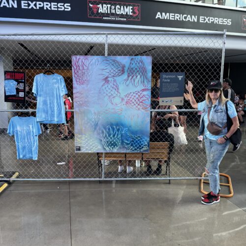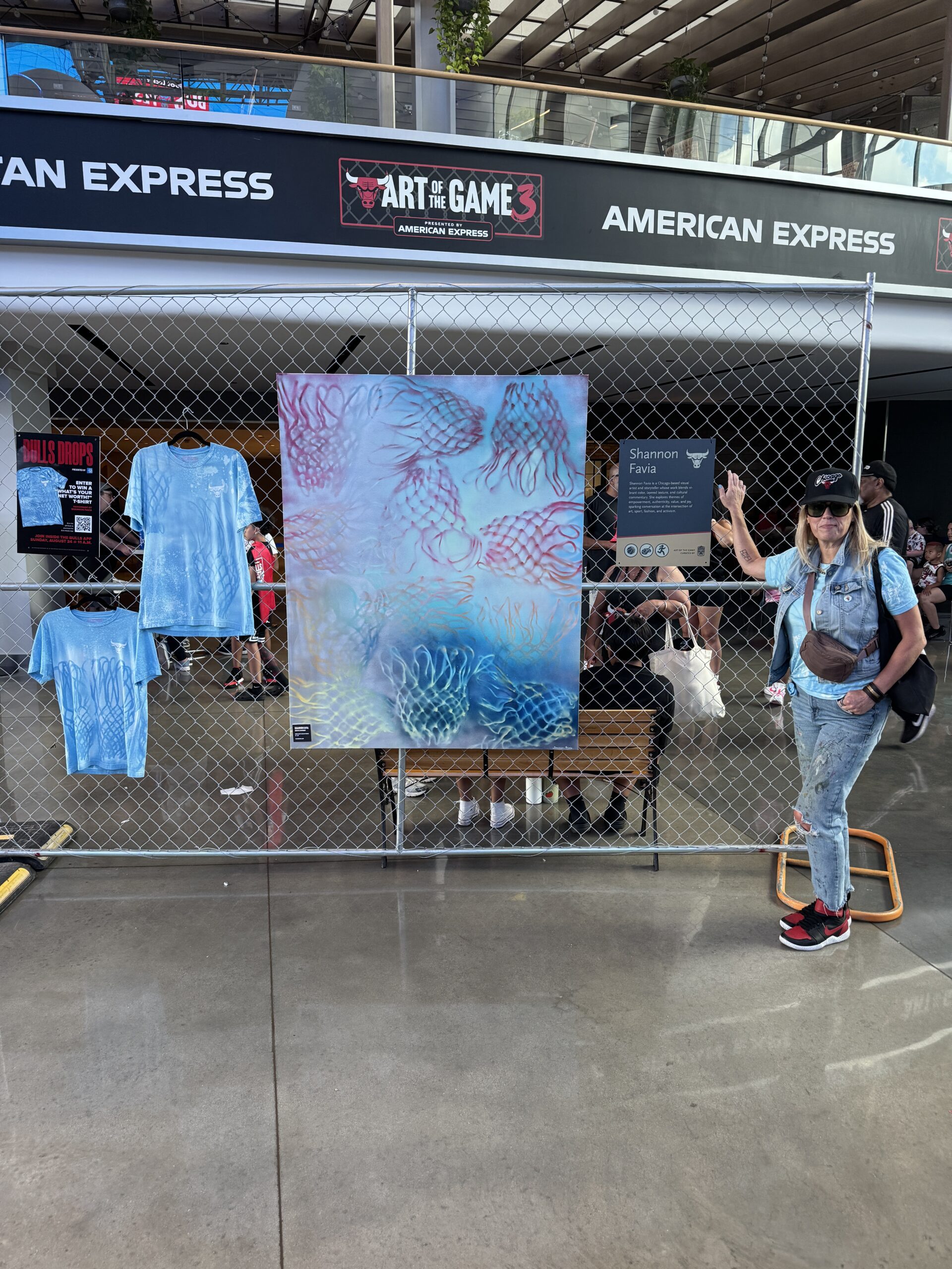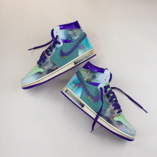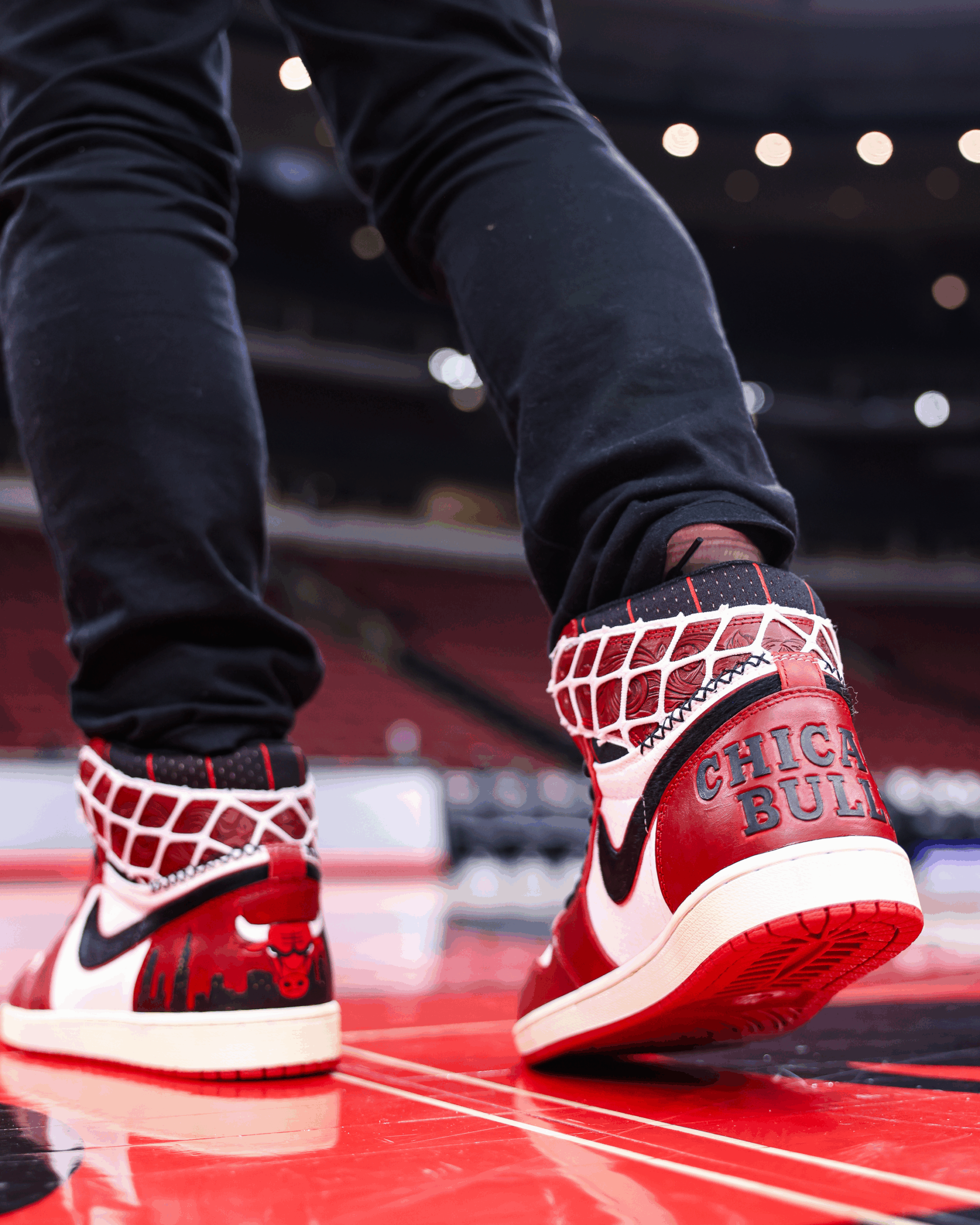 Born and raised in Lima, OH, I’ve been a working artist in Chicago for 25 years. My art is inspired by street culture, hip hop, sports, and optimism. I’ve painted countless Air Jordan 1s on canvas and created custom works that reflect each client’s story. I’ve even customized sneakers, hockey skates for Stanley Cup champ Adam Burish, and collaborated with the Chicago Bulls and Chicago Sky. My current series, What’s HER Net Worth?™, uses basketball nets as stencils to highlight gender inequality and promote empowerment. It’s grown from paintings to wearable art, including a Bulls collab with 50 one-of-one shirts. I’d love to bring that same message to these shoes—bold, hopeful, and empowering.