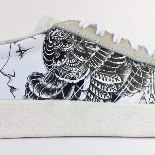 My artistic journey began with a diploma in Decorative Painting, which gave me the foundation for my future career. After finishing my studies, I set aside my brushes to explore the digital world of colour. I became a comic colourist, first for Walt Disney and later for publishers like Dylan Dog, Blek, and Tex. Still, my passion for traditional painting never faded. A few years ago, I returned to painting, bringing my art to sneakers. Realism inspires me most. I’m meticulous with details but open to new ideas. My digital experience taught me precision and courage to experiment. For me, art is something you love – something that makes you feel alive.