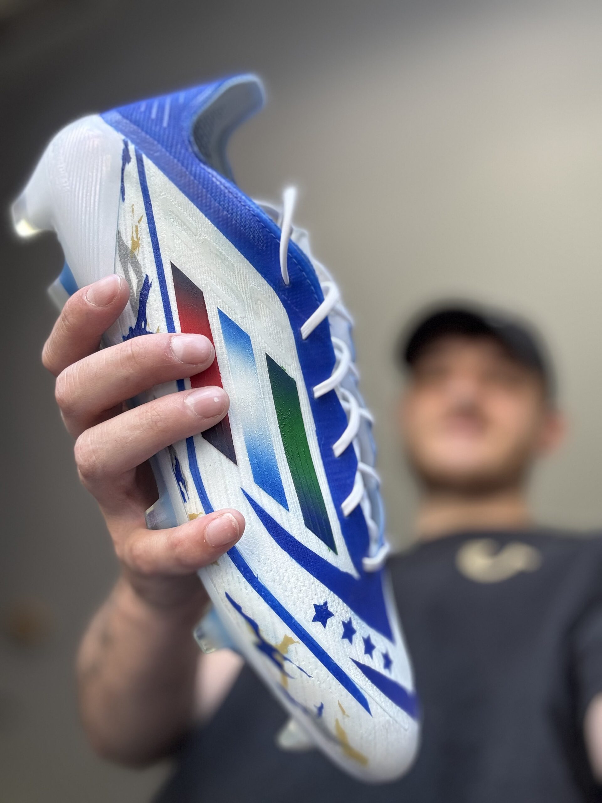 I’m a semi-pro footballer turned footwear artist, blending the game I love with bold design. What started in lockdown with an iPad and a passion for creativity has grown into viral moments, global collaborations, and opportunities I once could only dream about. Now after gathering a large following designing concept footwear on my iPad. I decided it was time to take the next leap in my creative journey. Bringing my designs to life! Though I’m relatively new to the art of creating custom footwear, my openness to learning from my mistakes has gathered the eyes and support of many amazing people eager to help. Also leading me to ultimately create some pieces I’m truly proud of. I see this as yet another opportunity to challenge myself and document the journey!