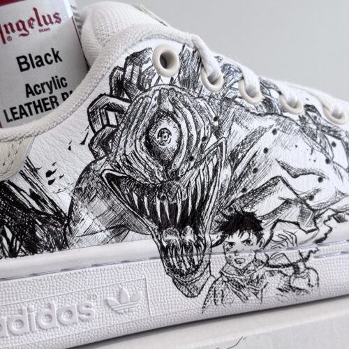 I am Javier Carabias, a Spanish artist who has been customising sneakers since 2019. I believe my style is quite unique because I love transforming sneakers into characters. I’m passionate about anime and comic designs, having grown up in the 90s and always admired the style and characters of that era. For me, the most important part of a custom piece is the design, and I always strive to make it the best it can be. I first started painting shoes to repair some of my own sneakers, but once I realised how amazing it felt, I couldn’t stop.