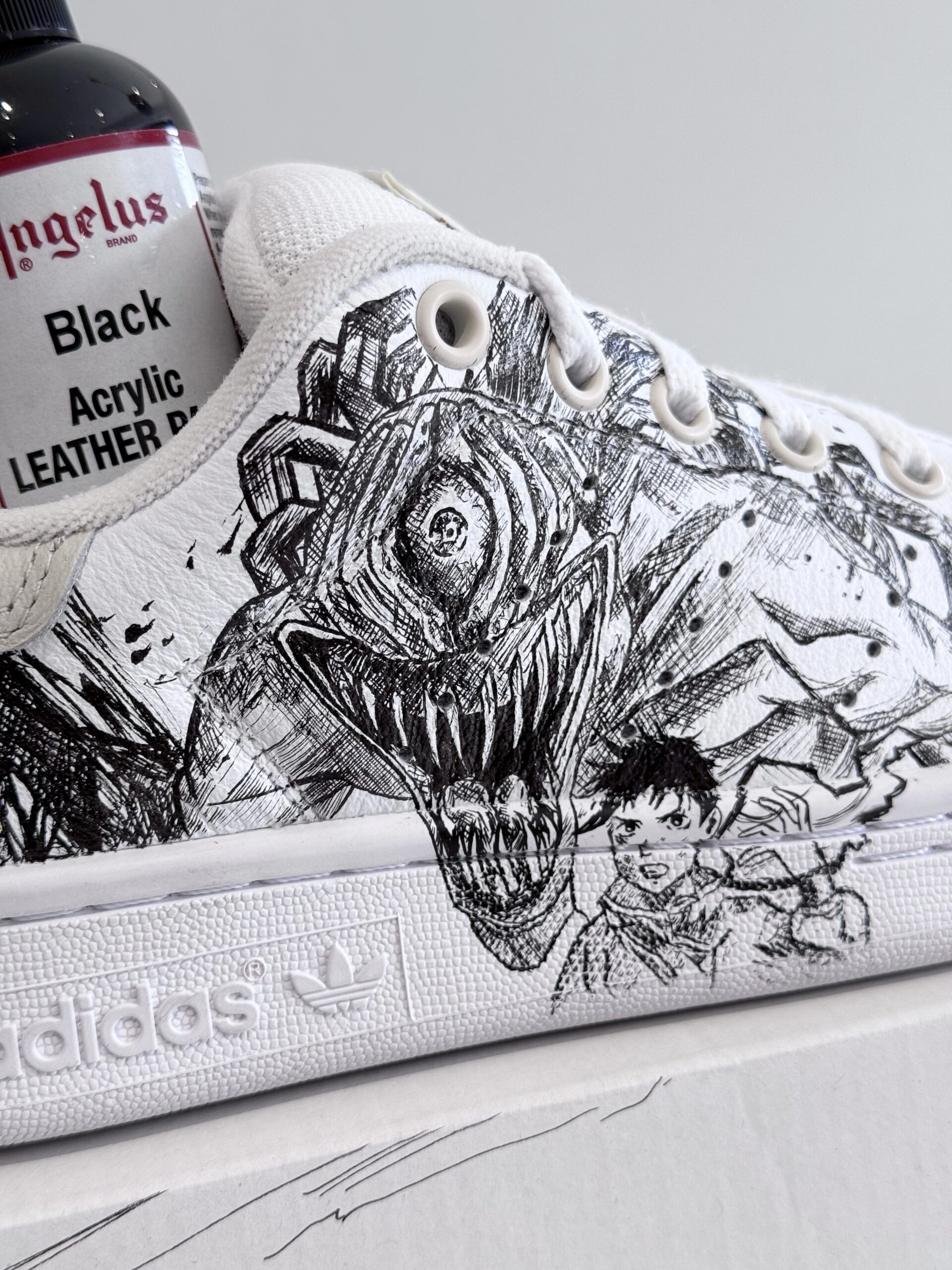 I always loved drawing and painting as a kid, but football was my main passion. Painting wasn’t even on my mind until COVID, when my journey as a sneaker customiser began. I started with no experience, painting straight from the bottle and learning through mistakes. Over time, I grew and realised that creativity never stops evolving. I now draw inspiration from movies, anime, music, and other artists, specialising in comic and anime art. My goal isn’t to take the easy route but to keep challenging myself and improving with every project. Each custom piece is driven by passion and attention to detail, reflecting my commitment to growth and giving 100% every time.