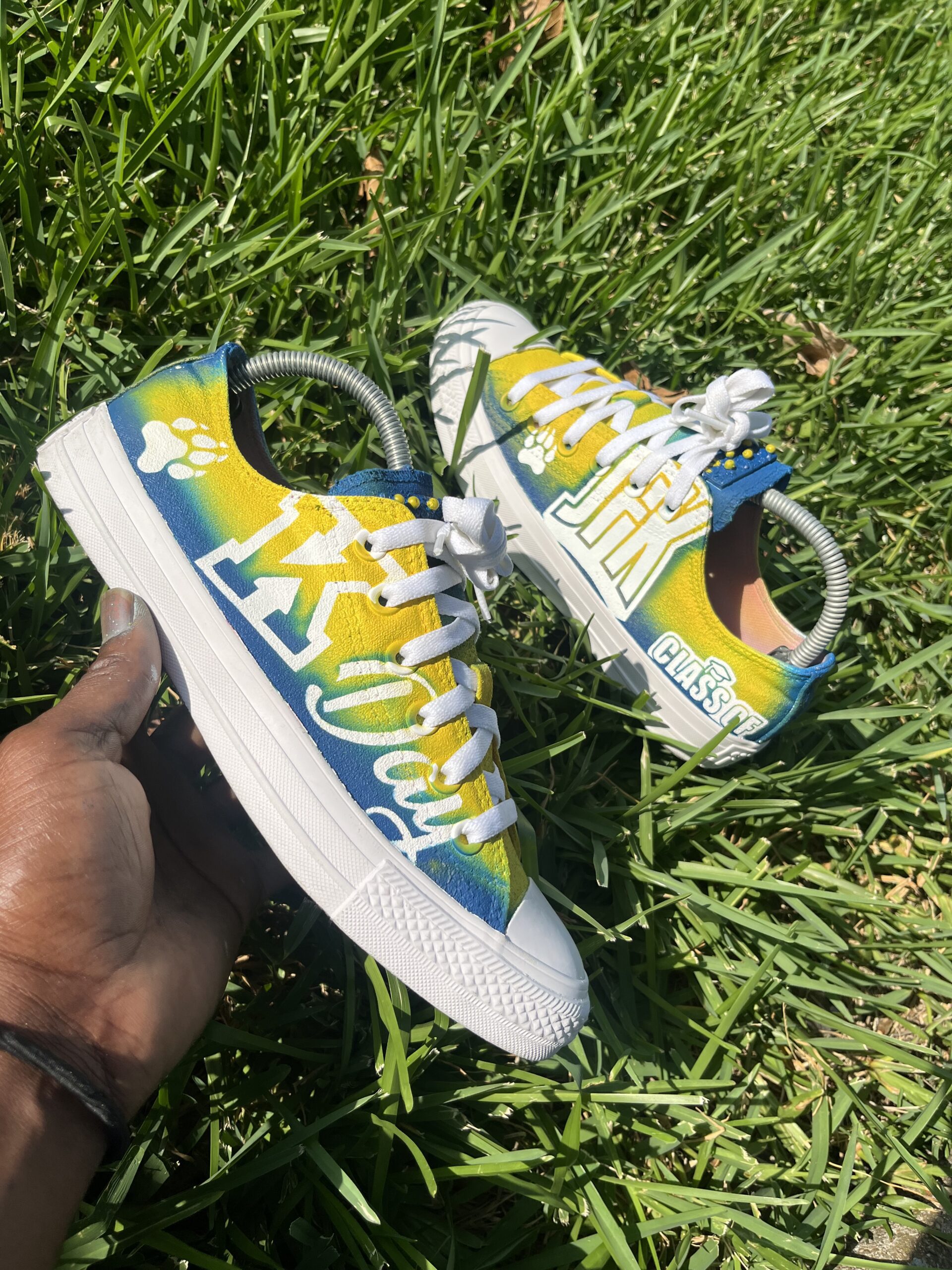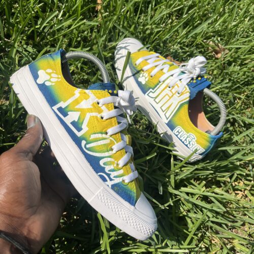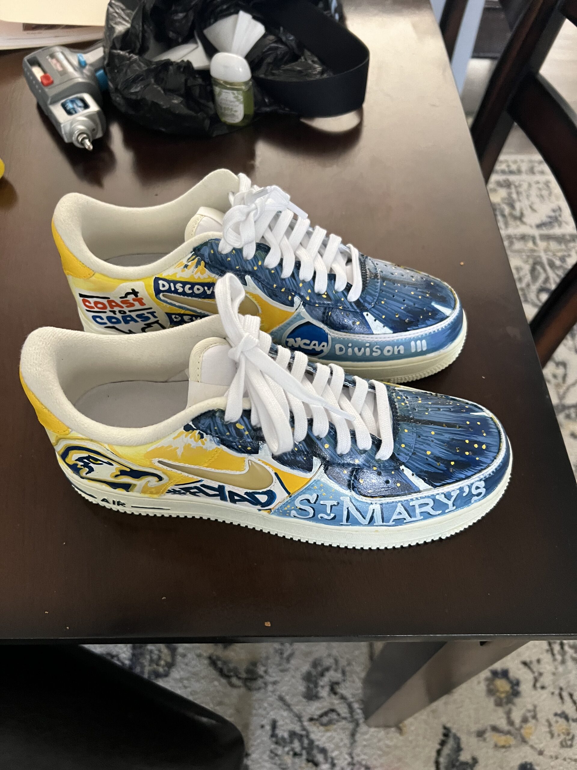 Watching my older brother draw sparked my love for art, and I soon began sketching too. During the pandemic, I finally focused on my craft. While sketching Looney Tunes, my sister joked I should try drawing on shoes—so I did. I painted her white Vans with Tweety Bird for her birthday using an Angelus Paint Kit. That first pair lit a fire in me. Soon after, I launched my brand, CaryMadeThose—so clients could say, “Cary made those.” I create wearable art that reflects each person’s story, pulling from their personality and energy to bring their vision to life. As a college student-athlete, I see art not just as something I do, but as who I am.