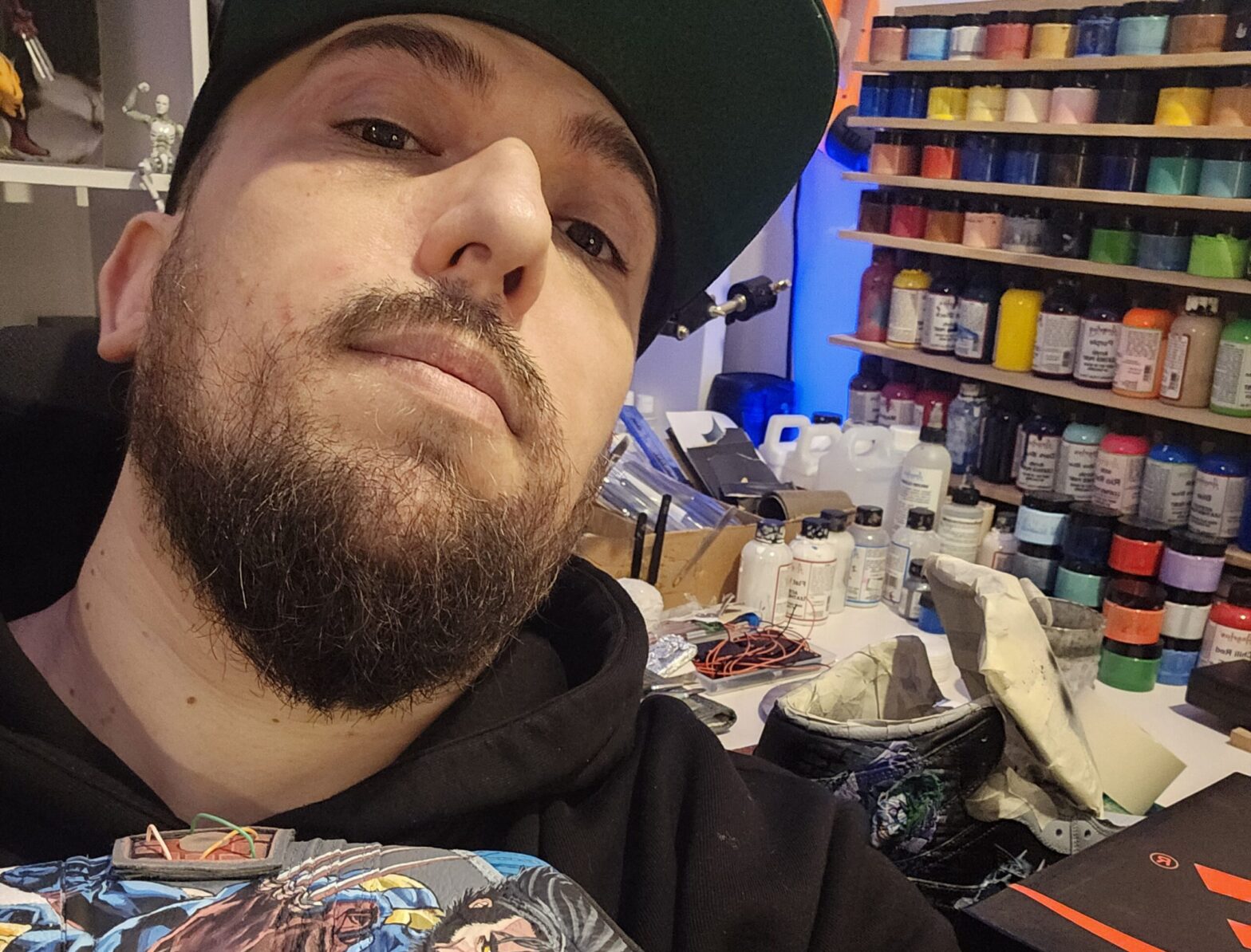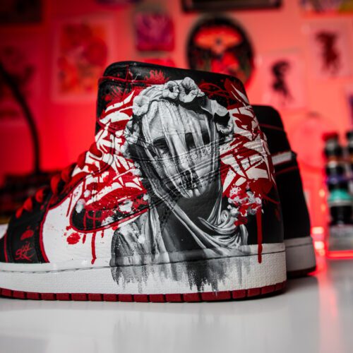 Well, what can I say about my story? My “adventure” in the world of customisation began in 2010, when I painted my first pair of sneakers. Since then, many wonderful things have happened, including taking part in a major exhibition in Paris featuring Jordan 1 models. It was truly an honour and a source of pride to share that space with so many talented artists. And now, I balance my passion with my day job as a greengrocer in a hypermarket.