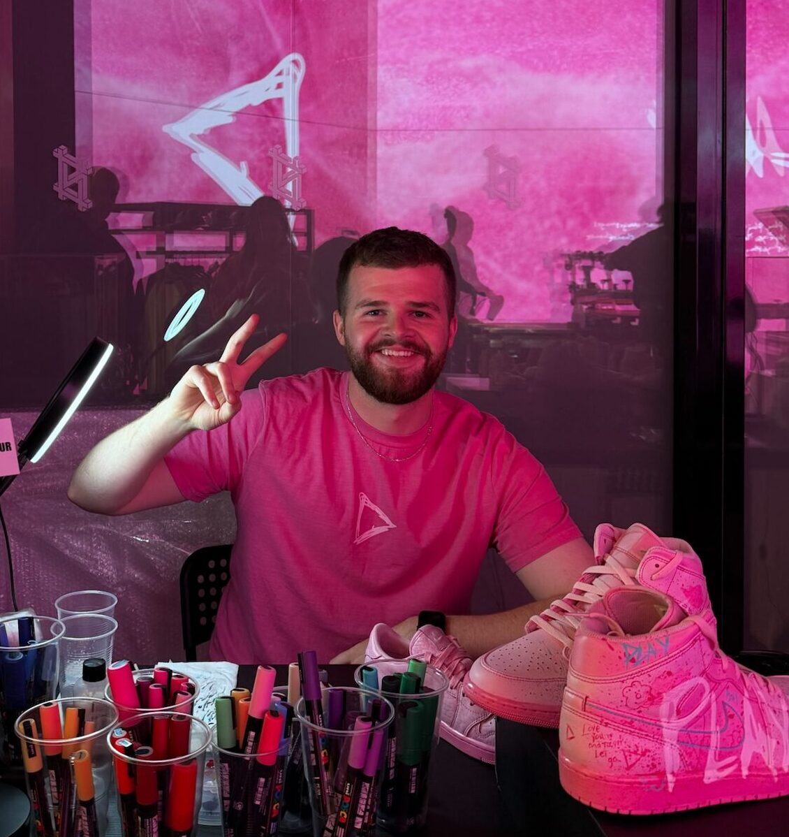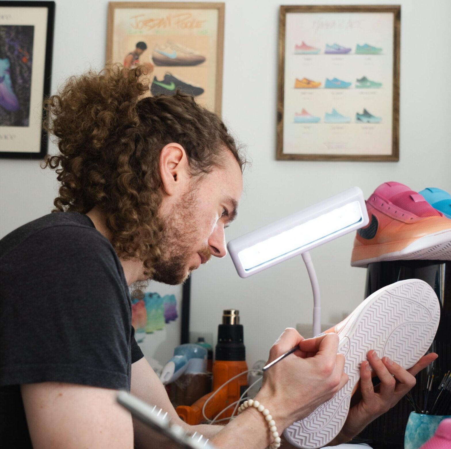 I’m Colin Wirth, the artist behind 616 Customs — I turn sneakers into stories. What started in my college apartment has grown into creating one-of-one designs for artists and influencers like Marshmello, DaBaby, and Nic from Love Island. I mix bold color palettes, hidden details, and music-inspired themes to make every pair feel like it was made for the moment. My goal’s always the same — to make something you’ve never seen before that still feels personal to who’s wearing it.