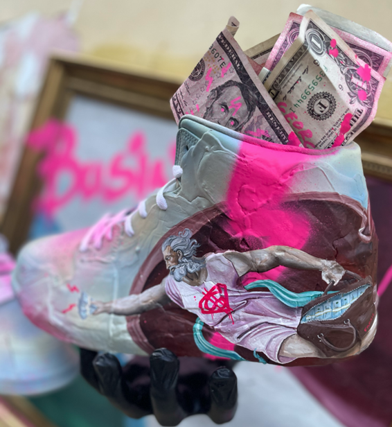 My work reimagines iconic forms through fashion, sneaker design, sculpture, and installations—transforming them into bold, personal statements rooted in Black culture, identity, and innovation. I turn the familiar into the extraordinary: basketballs become canvases, hair becomes sculpture, and everyday materials become symbols of heritage and power. Each piece celebrates the rhythm, resilience, and brilliance of the Black community—challenging limits and redefining expression. My art blurs the line between fashion and storytelling, inviting people to feel, not just see, the work. It’s nostalgic yet futuristic, a celebration of where we’ve been, where we are, and where we’re going.