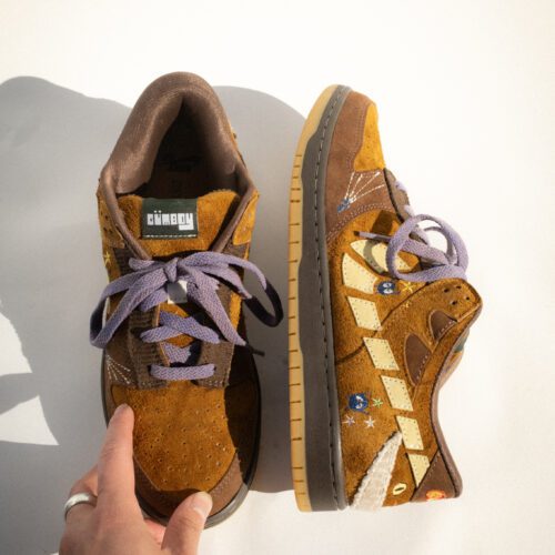 I’ve always loved creating – starting from doodles on notebooks, walls, and even sneakers. What began as a hobby grew into a passion for turning ideas into something tangible. That curiosity led me to shoemaking, where I could choose materials like leather, suede, and fabric to bring my visions to life. This evolved into GÜMBOY, a bespoke footwear brand inspired by childhood nostalgia. Each design tells a story, such as the Catbus sneakers with embroidered details and playful tones, or the Magikarp Sambas featuring layered blue fabrics that mimic waves and sashiko stitching. Through my work, I want to remind people to reconnect with their inner child, stay creative, and embrace a sense of wonder in everyday life.