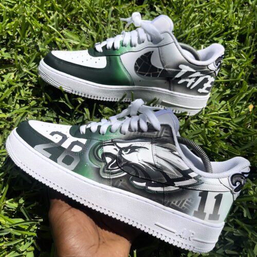 Being a self taught airbrush artist since 1992 the airbrush has always been my original choice of tool to customize airbrush design anything apparel and has evolved to footwear in 2015 bringing my skill set to footwear canvases such as Airforce 1\’s and Football Cleats. I am inspired by the people I continue to serve. Seeing the reactions and smiles of people from the youth and young at heart is what is my continued driving force to create My work is described as being clean and stands out as my brand which bears my logo in the watermark. The logo for Erica B utilizes the color blue which means \”trust\” It\’s my honor to serve people with customized footwear knowing that they can stand behind a brand they can trust will do and give the best there is to offer from our canvas.