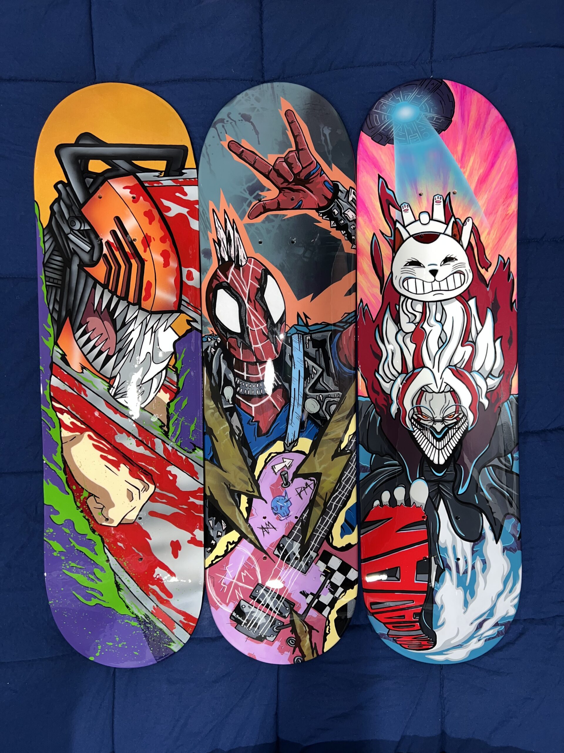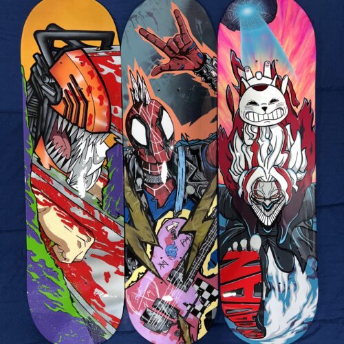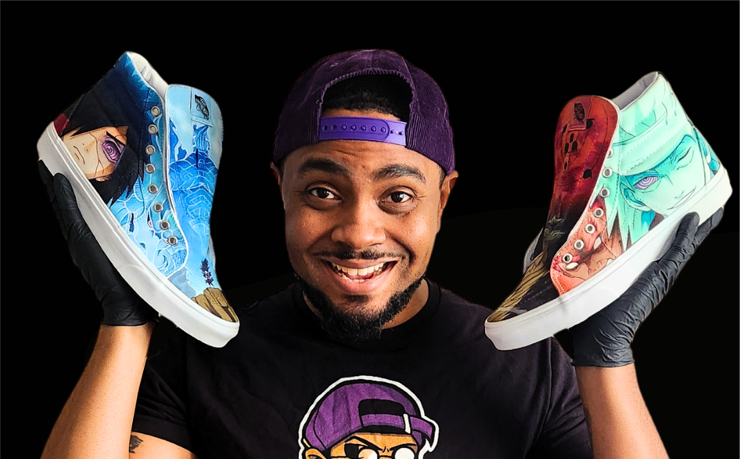 Born and raised in Atlanta, I grew up sketching anime characters at 8 years old, never imagining it would evolve into a lifelong passion for creativity. I now blur the line between art and imagination, bringing stories to life on any canvas—from sneakers to skateboard decks. I call myself “just an artist,” but my clients remind me I’m a storyteller, capturing emotion, nostalgia, and individuality through my work. Inspired by anime, video games, and pop culture, I thrive on turning ideas into unforgettable art. Every piece begins with my clients’ stories, blending their favourite moments with my vision and technique. For me, art isn’t just what I do—it’s who I am.