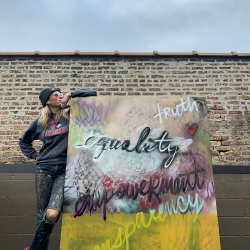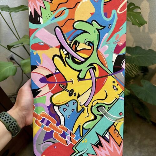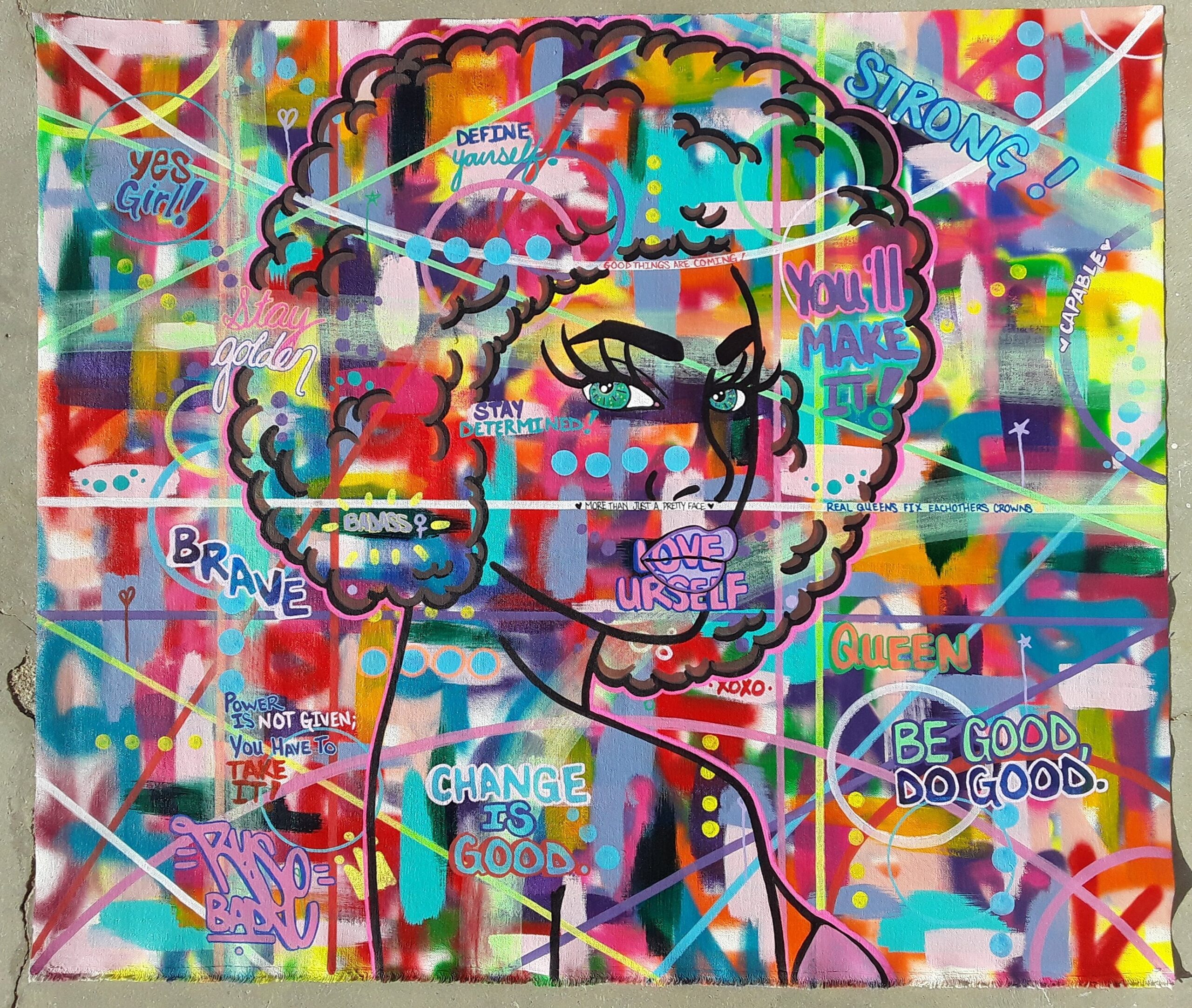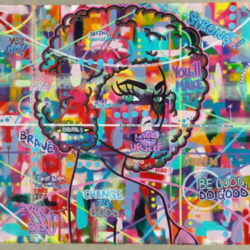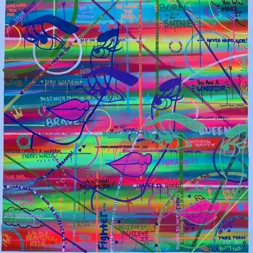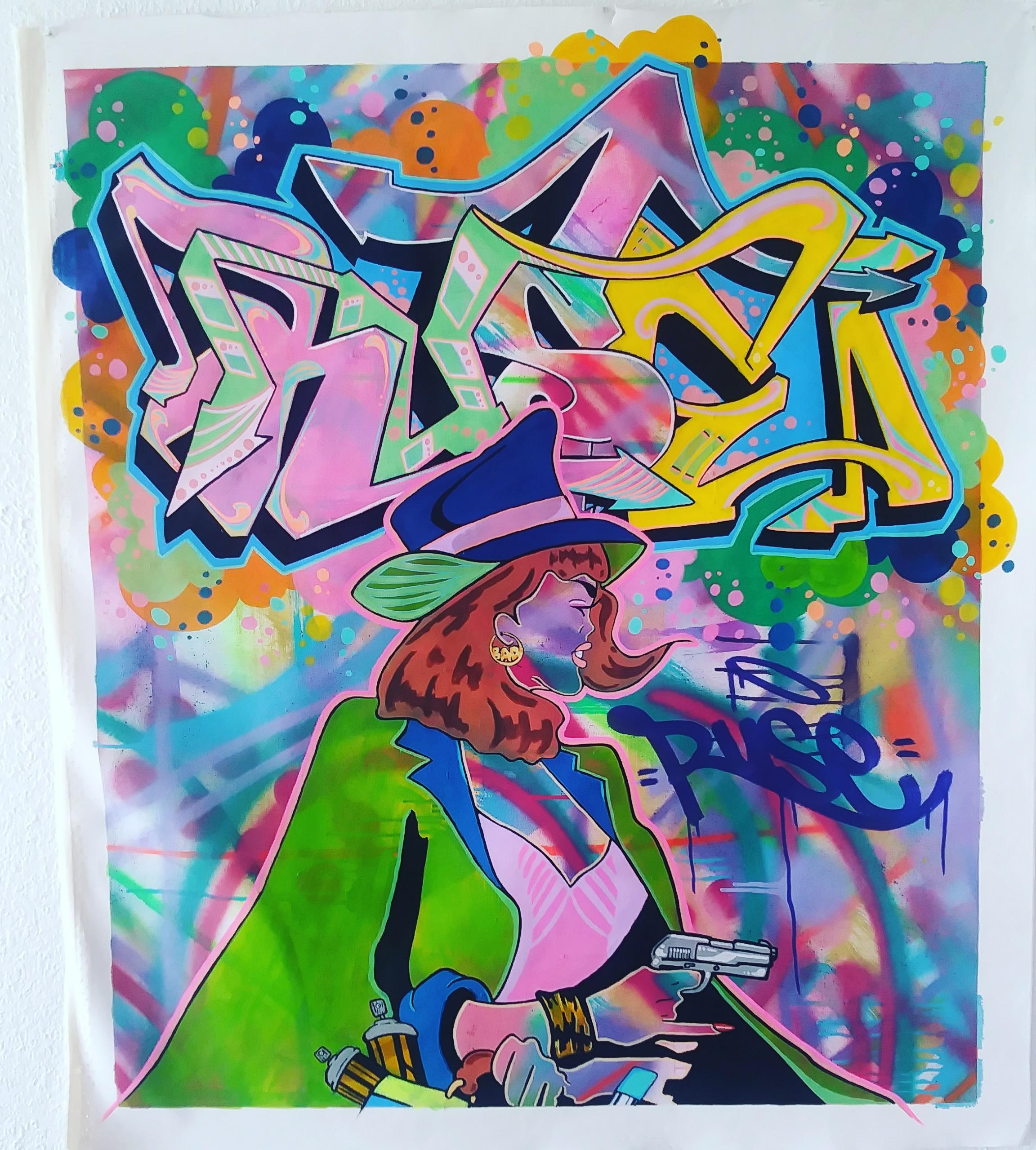 Ruse BAD is a graffiti and pop artist from California’s Bay Area, known for her vibrant, empowering works. Starting in the early 2000s as a graffiti writer, she has evolved over two decades into a contemporary artist blending bold colours, acrylics, and mixed media. Her art draws inspiration from travel, culture, and the works of artists past and present, constantly evolving with new ideas and emotions. Ruse’s pieces celebrate strength, hope, and beauty—especially for women—and have been exhibited across the US and Europe, including Spain, Belgium, the Netherlands, and France. Her work is collected worldwide and continues to inspire through its message of empowerment and resilience.