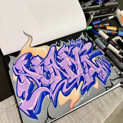 I’m Andi from Berlin, Germany. My artistic journey began in 1998 when I started painting graffiti at 12. Over the years, I developed my own style, starting with lettering before discovering airbrushing. Inspired by the early 2000s graffiti and airbrush hype from the USA, I began customising T-shirts, trucker hats, and more, selling my work on eBay while still in school. After graduating, I pursued art full time, working as a graffiti and airbrush artist on walls, clothing, and sneakers. I’ve since collaborated with brands, done live events, and created commissioned graffiti pieces. Since 2014, I’ve focused more on murals under my graffiti name “Cokyone.” Today, I run an online shop, combining graffiti, urban art, and sneaker customisation into one unique style.