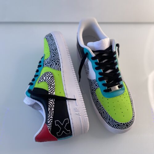 I’m a sneaker customizer from Italy. This craft has finally allowed me to find the right channel to express my artistic needs. With Angelus acrylic paints, I can achieve an incredible level of detail, from ultra-opaque flat color blocks to soft, seamless gradients. I pay great attention to the quality of details and to the overall graphic composition. As a graphic designer, I love mixing, cutting, and composing digital images, and I bring that same attitude into my customs, blending elements and forms to create layered visual compositions. I love the custom process: for me, it’s a constant challenge. I’m always looking for new subjects and compositions that push my limits and help me grow with every piece.